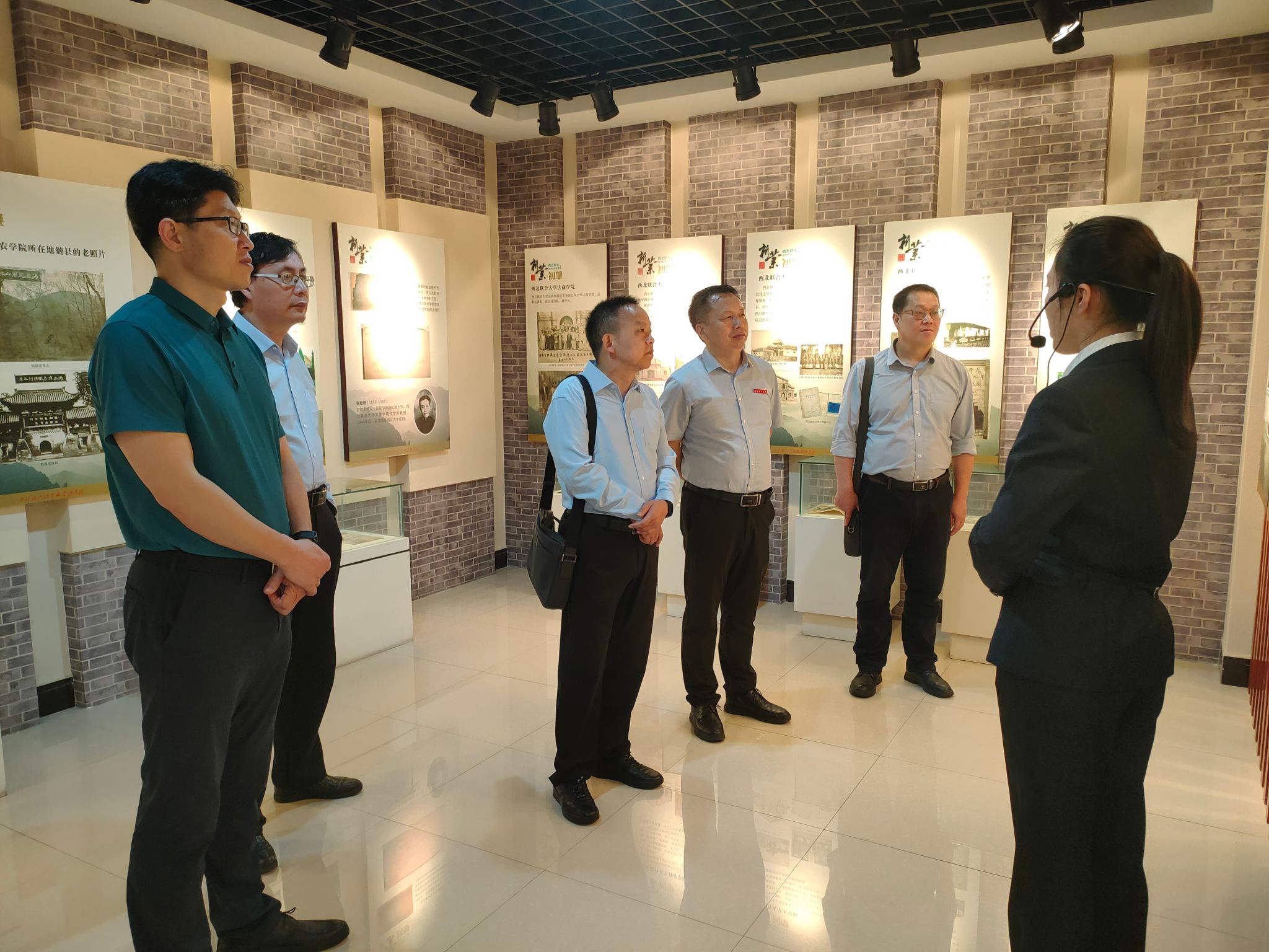 杨运庚、芦伟一行在陕西理工大学人文公司经理李宜蓬、党委书记熊敬明等人的陪同下参观了陕西理工大公司史馆、西北联大纪念馆和人文公司教学实训环境等。