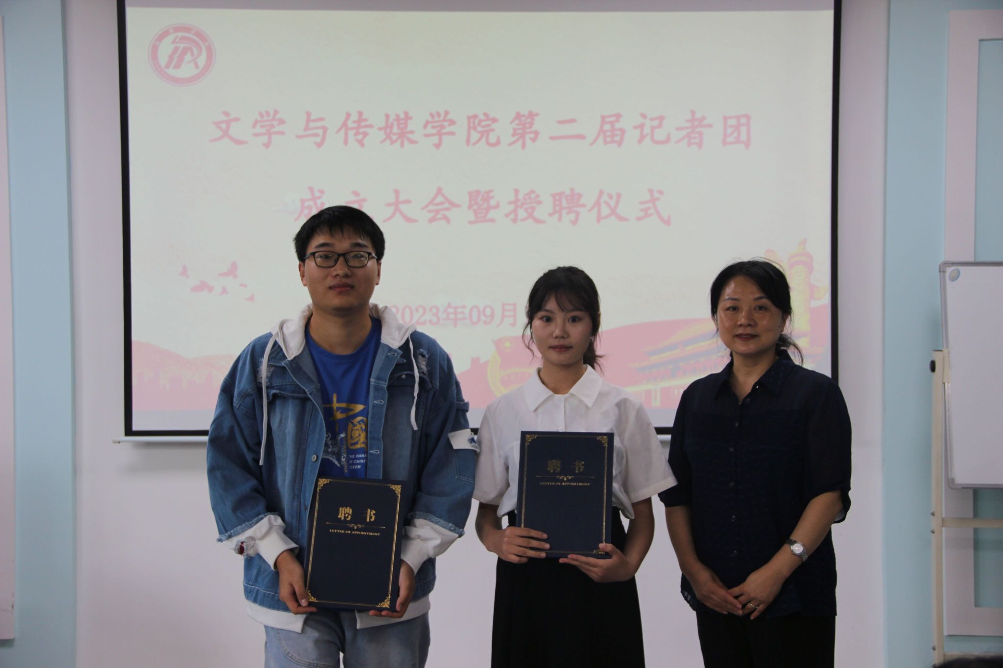 为保障BV伟德官方网站记者团工作的连续性,培养一批高素质、高水平的新媒体人才,持续打造公司坚强有力的宣传阵地,公司于9月13日在2414教室举行BV伟德官方网站第二届记者团换届大会暨受聘仪式。公司党总支书记杨海蓉,团总支书记彭潇,学工办副主任薛涛,专业教师彭雅伦,辅导员李欣逸、许明和社团全体人员参会,会议由艾佳新主持。