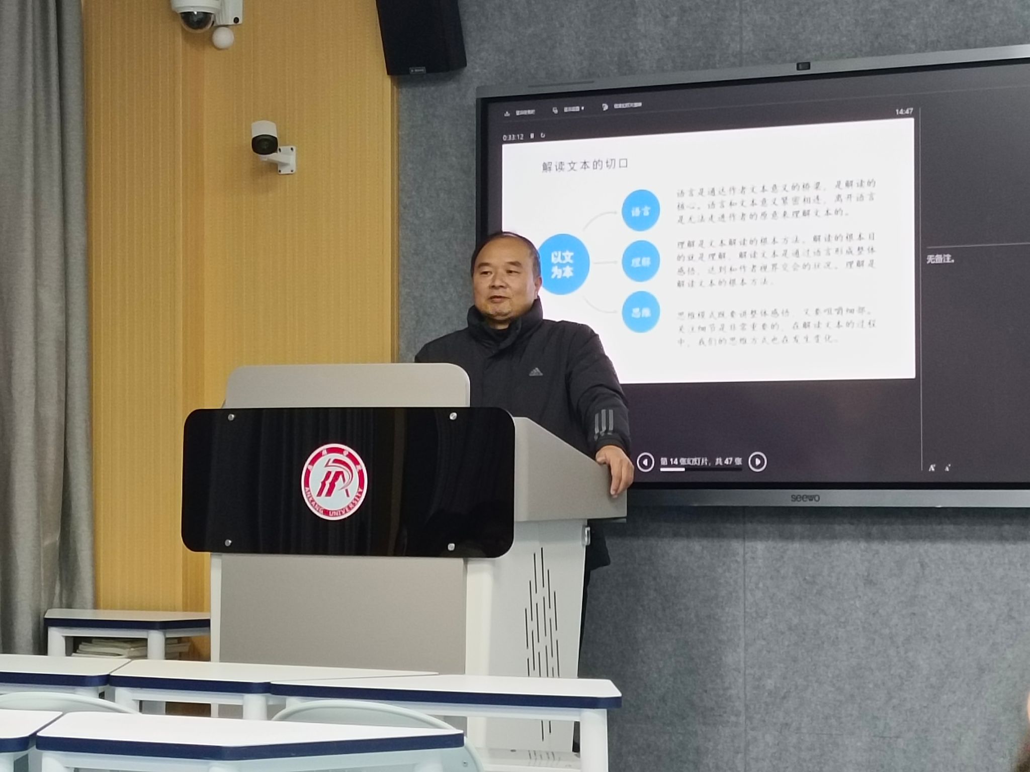 11月30日下午,在1号楼1405教室,BV伟德官方网站邀请李玉恒老师为汉语言文学专业员工做了主题为“初中语文阅读教学文本解读面面观”的学术讲座。
