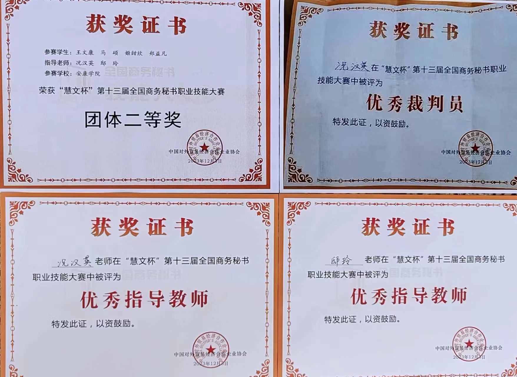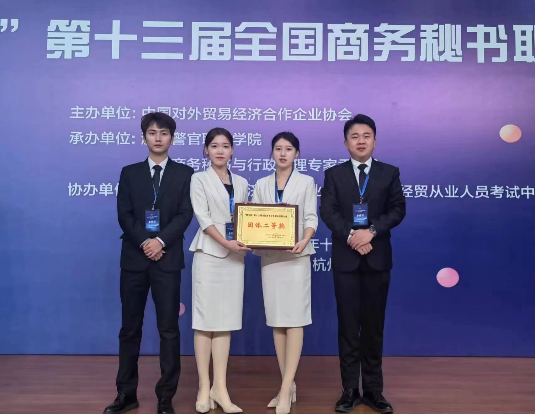 “慧文杯”第十三届全国商务秘书职业技能大赛于2023年12月1日至3日在浙江警官职业公司隆重举行,来自全国近600名师生相聚西子湖畔同台竞技。大赛由中国对外贸易经济合作企业协会主办,浙江警官职业公司和全国商务秘书与行政助理专家委员会承办,中国对外贸易经济合作企业协会外经贸从业人员考试中心协办。BV伟德官方网站代表队在本次全国商务秘书职业技能大赛中再创佳绩,荣获“团体二等奖”。
