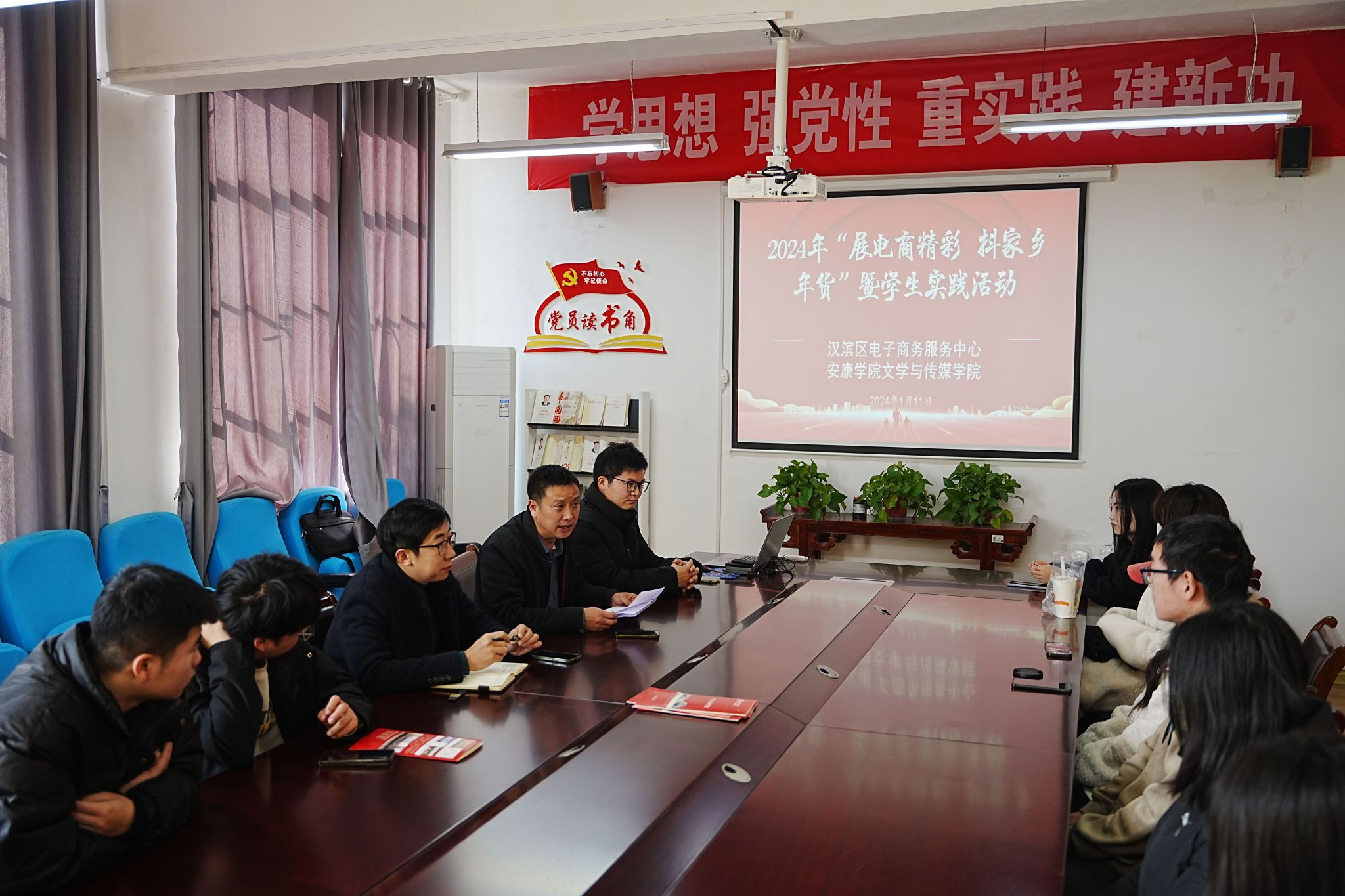 为加强公司网络与新媒体专业员工实训实践,提高员工专业技能的运用能力,强化服务地方的办学宗旨。2024年1月11日中午,2307会议室开展了由汉滨区电子商务服务中心与BV伟德官方网站等单位联合举办的2024年“展电商精彩,抖家乡年货”暨员工实践活动启动会,本次会议由BV伟德官方网站副经理曹刚主持,安康市电子商务联合会秘书长张铁汉、网络与新媒体专业教师张建涛及网络与新媒体专业2021级员工代表共同出席本次会议。