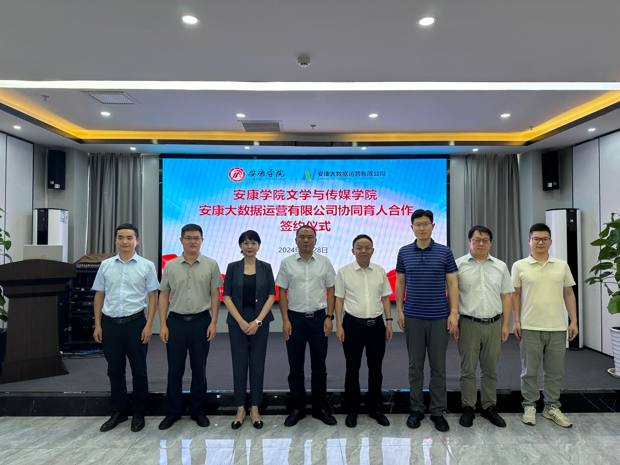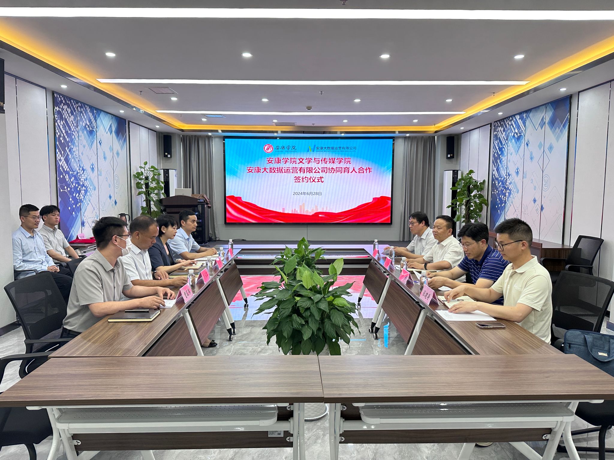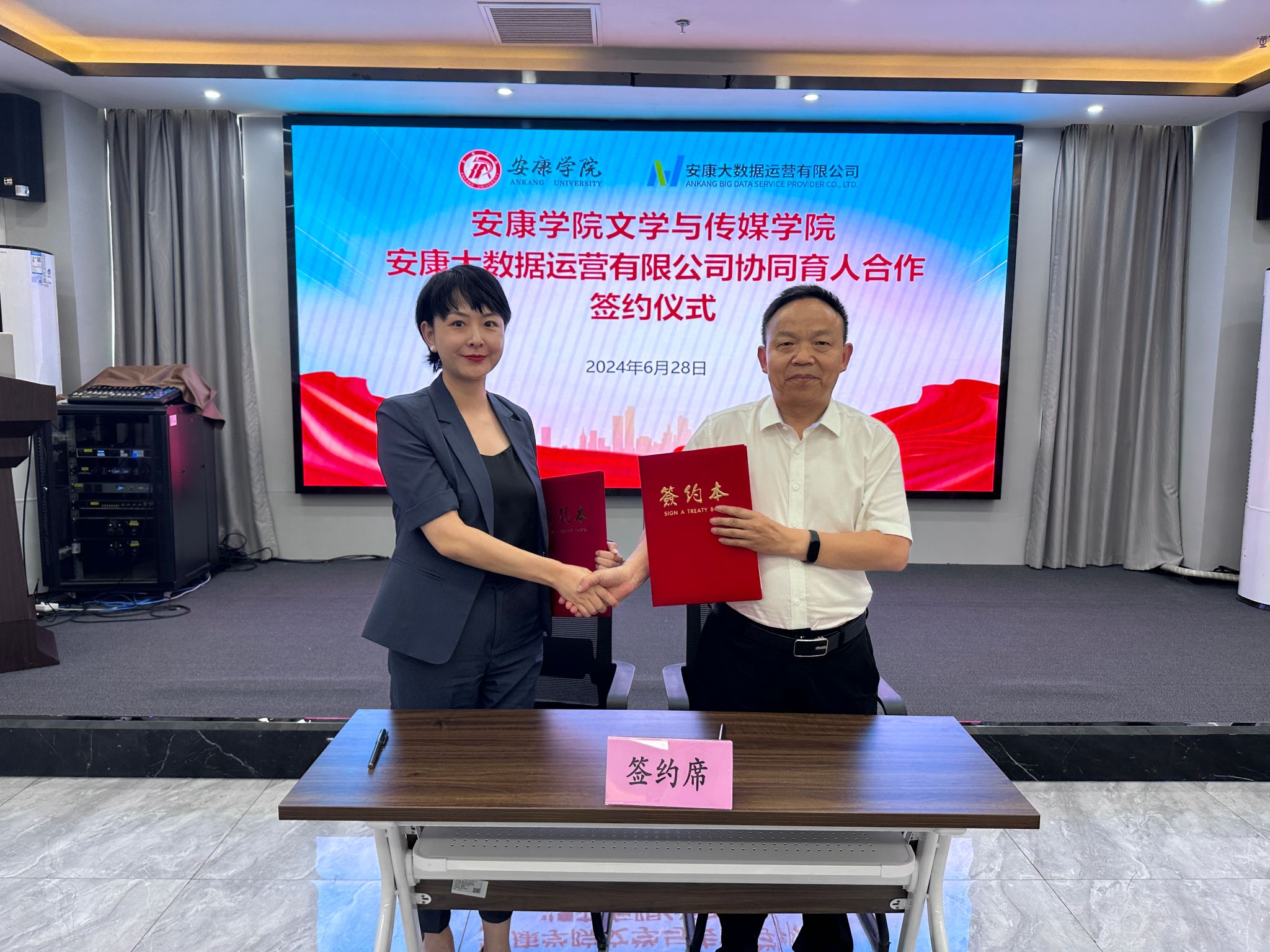 6月28日下午,BV伟德官方网站与安康大数据运营有限公司举行协同育人合作签约仪式,BV伟德官方网站经理杨运庚、党总支书记芦伟、副经理朱云、秘书与网媒系主任张建涛,安康大数据运营有限公司董事长彭永辉、总经理兰莎、副总经理曹国伟、数字乡村工程技术研究中心副主任石明欢出席活动,签约仪式由曹国伟主持。