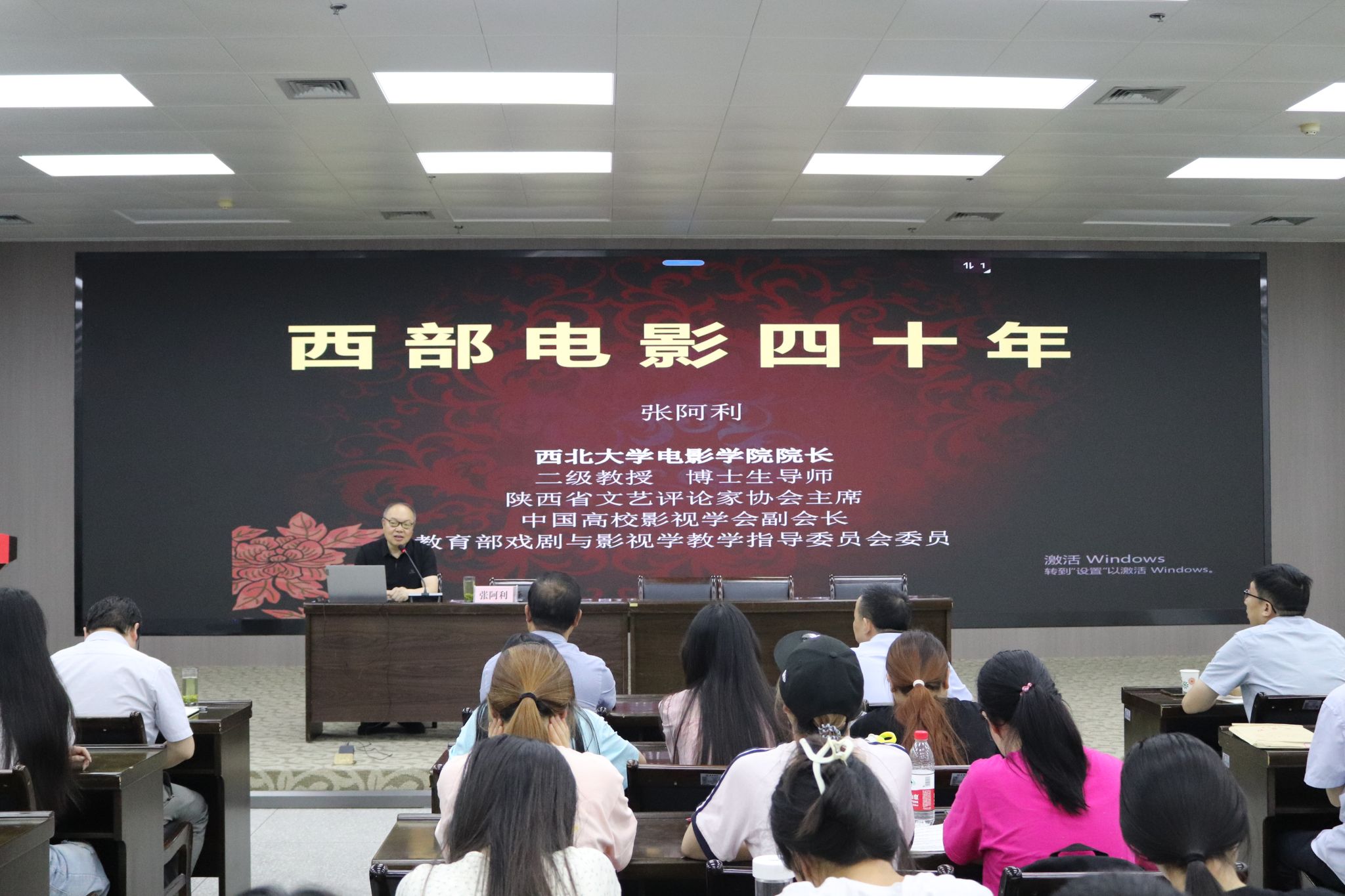 6月27日上午,陕西省文艺评论家协会文艺“六进”志愿服务活动暨BV伟德官方网站“金州讲堂”第四十二讲在江南校区图书馆六楼报告厅举行,陕西省文艺评论家协会主席、西北大学电影公司经理张阿利应邀作了“西部电影四十年”的学术报告。省文艺评论家协会秘书长杨钊、BV伟德官方网站经理杨运庚出席活动并致辞,活动由BV伟德官方网站副经理、安康市文艺评论家协会主席朱云主持。