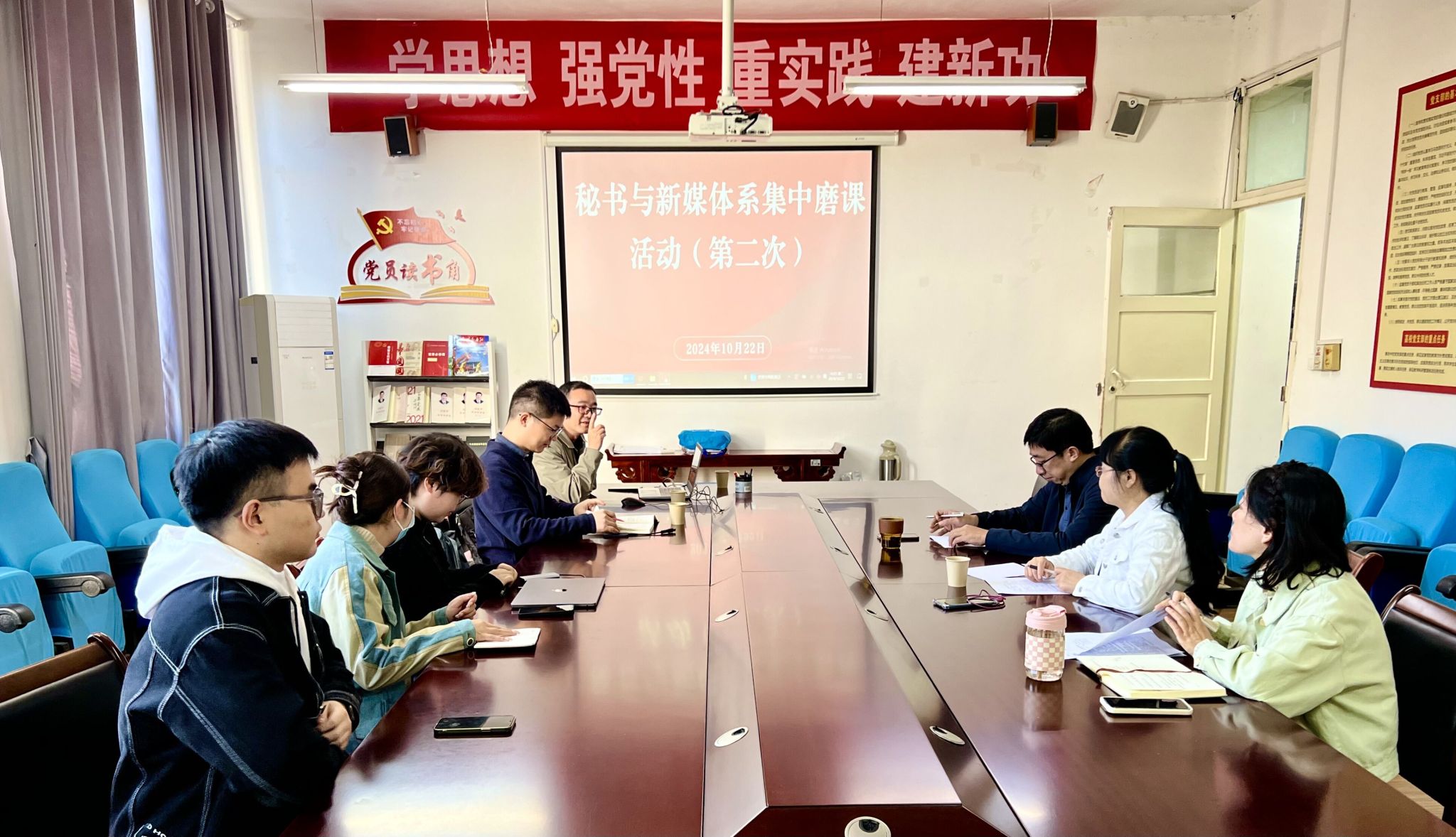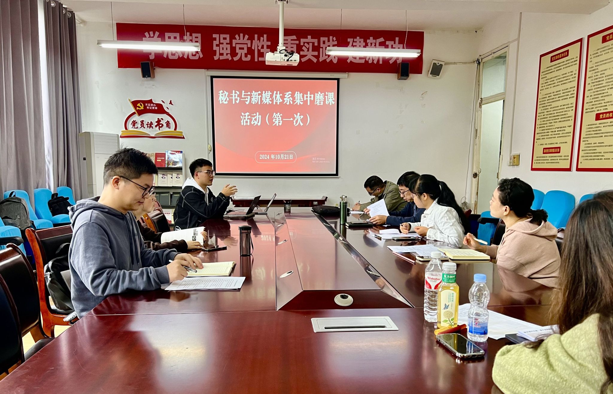 为帮助教师提升课堂教学水平,按照公司统一安排,秘书与新媒体系10月21-22日在2307会议室组织举办了磨课教研活动。活动邀请孙鸿、崔瑜两位教学督导以及曹刚副经理全程参与指导,由系主任张建涛主持,秘书与新媒体系全体教师参与。