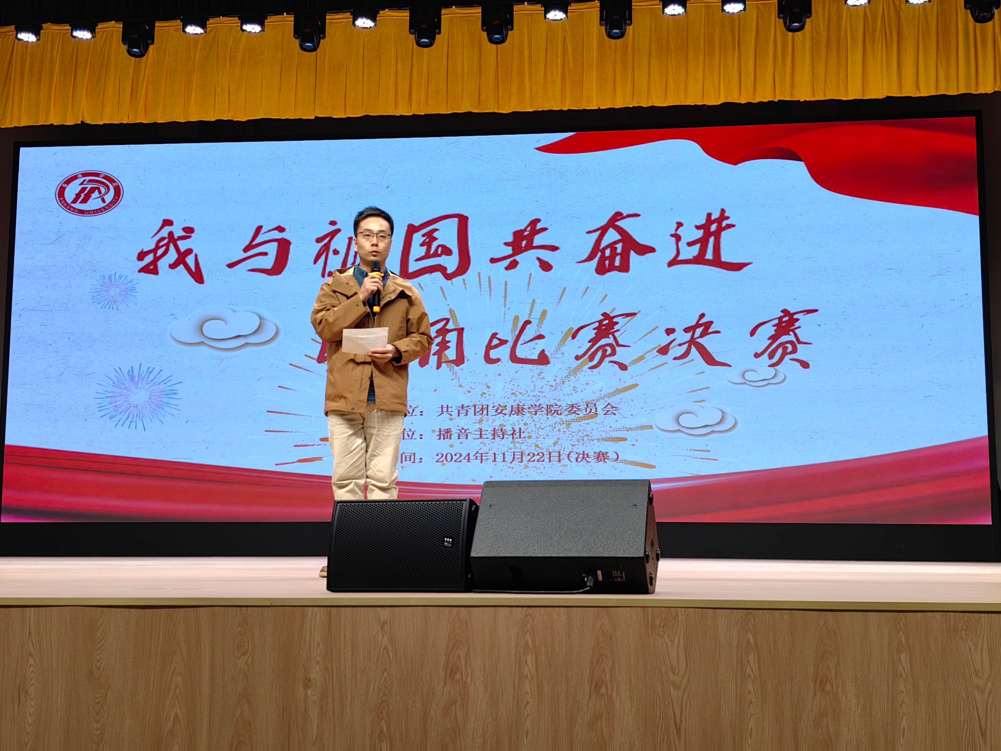 为弘扬爱国主义精神,展现新时代老员工风采,11月22日晚,公司“我与祖国共奋进”朗诵比赛决赛在公司大礼堂成功举办,本次比赛由BV伟德官方网站团委主办、播音主持社承办,BV伟德官方网站杨海蓉、崔瑜、王一丹、社团指导老师曹璇璇、黄治强担任评委,初赛获胜的10支参赛队参加了本次决赛。