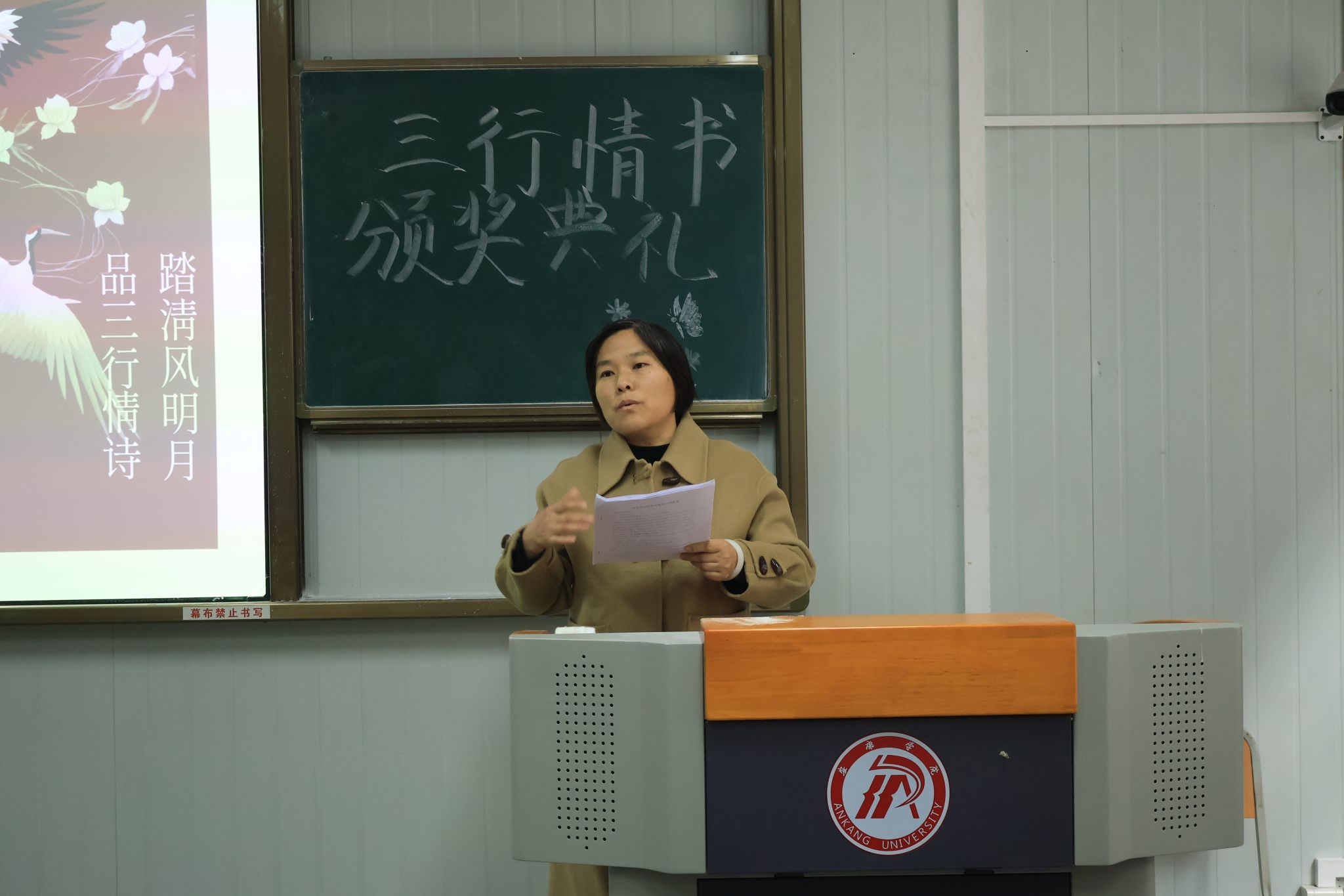 为了激发员工的创作热情,提升员工的文学素养,近期文学创作社举办了“三行情诗”大赛。经过评选,于12月7日下午在江南校区1013教室举行颁奖典礼,社团指导老师韩文霞及社团全体成员和获奖人员参与活动。