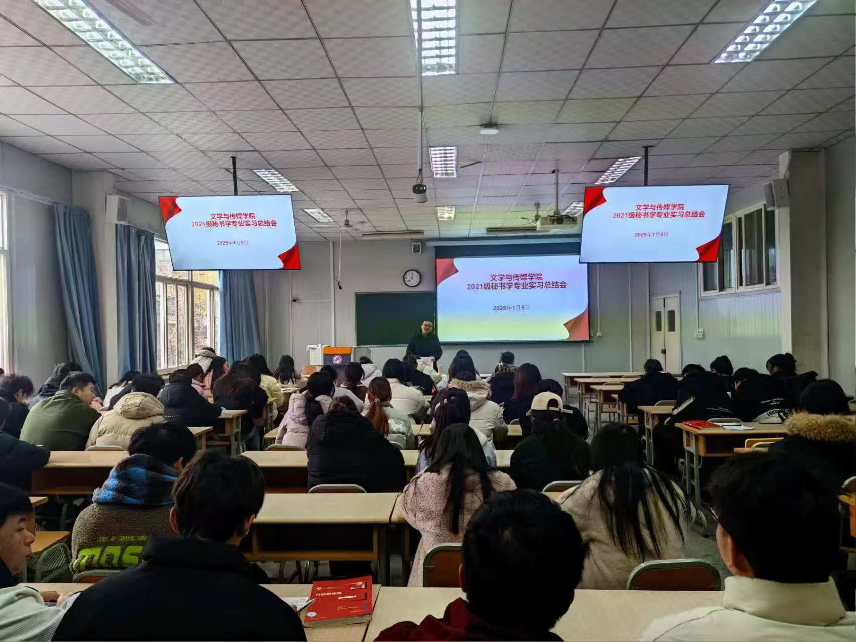 2025年1月5日,BV伟德官方网站在1026教室召开秘书学专业实习总结会,副经理朱云、实习带队教师胡少山以及2021级、2022级秘书学专业员工参会,会议由实习生李欣窈主持。