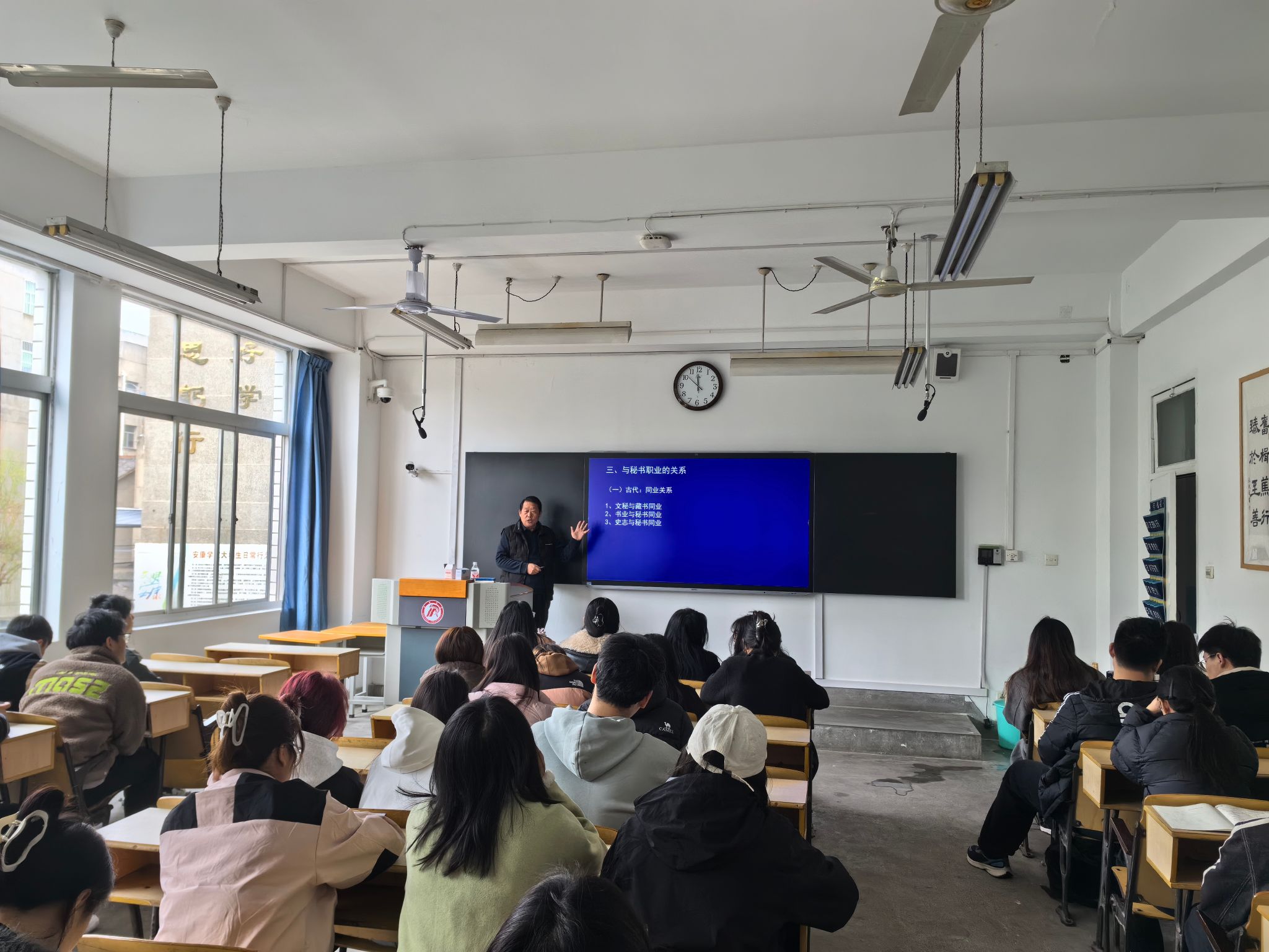 导航痕迹 首页 > 新闻通知 > 公司新闻 > 正文 公司新闻 通知公告 秘书与新媒体系邀请行业专家李焕龙来校讲课 来源:BV伟德官方网站 发布日期:2025年03月10日 阅读次数: 3月6日,秘书与新媒体系在1209教室成功举办《行业企业问题讲座》第二讲。此次特邀原安康市图书馆馆长李焕龙为秘书学专业2022级全体同学带来了一场题为“图书馆行业与秘书工作”的讲座,讲座由秘书学专业负责人胡少山副教授主持。 讲座从中国图书馆行业发展概况讲起,李焕龙老师结合自己20多年的从业经历,用幽默的语言、丰富的案例,围绕“我国图书馆行业现状”“图书馆行业与秘书职业的关系”“图书馆行业与秘书工作的关系”等话题,深入浅出地阐述了秘书工作与图书馆行业之间紧密的联系。他着重指出,秘书工作无小事,秘书在做好事务性工作的同时,要努力借助现代图书馆为领导在资料搜集、参谋决策等工作中提供智力支持。 本次讲座为同学们搭建了一个面对面了解图书馆行业秘书工作的交流平台。同学们在聆听李焕龙老师的讲座后,对图书馆行业有了更深入的理解,为未来从事秘书工作打下相应的基础。 撰稿/王文康 摄影/胡少山 审核/朱云、胡少山 发布/崔瑜