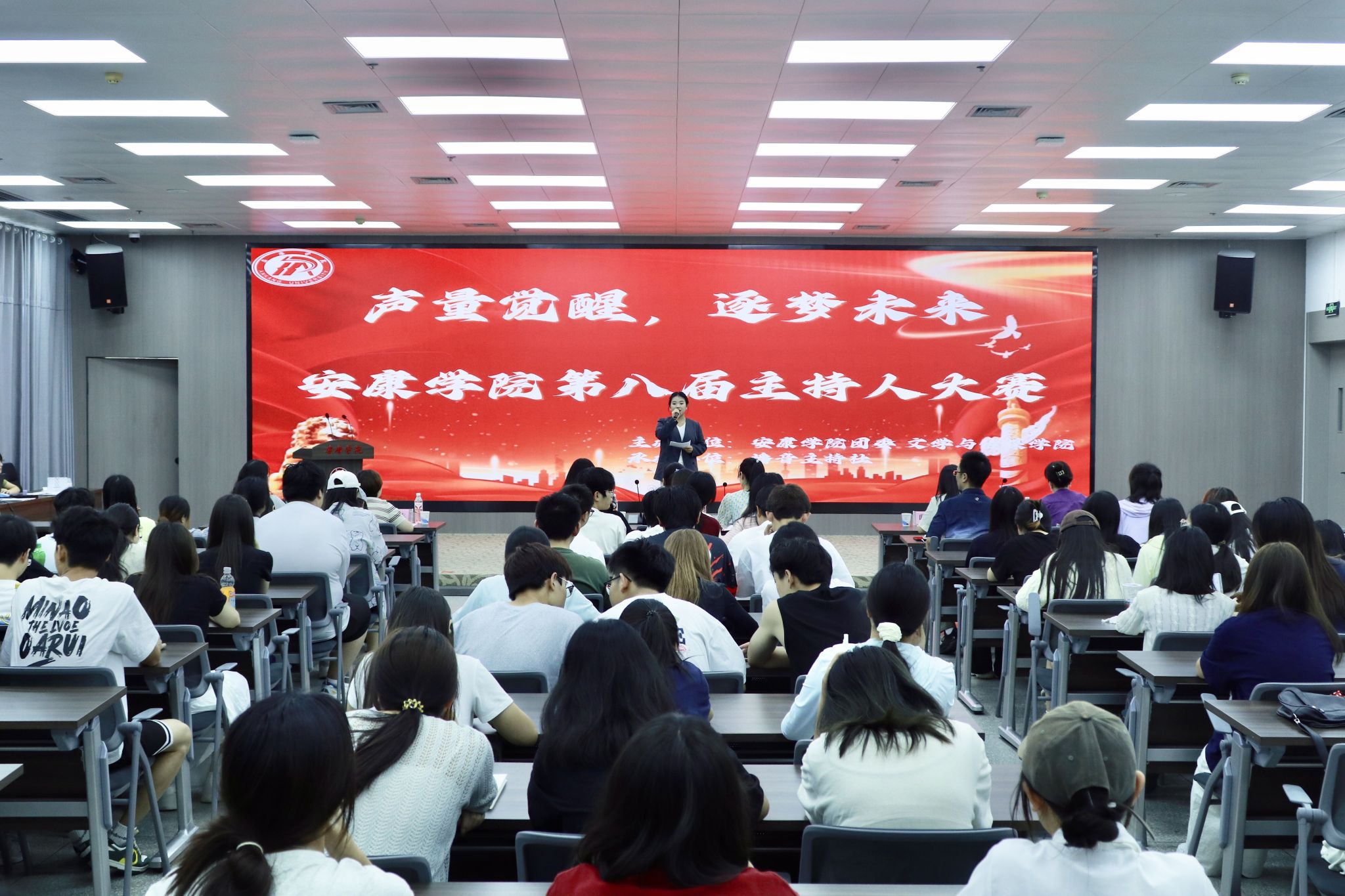 6月13日下午,播音主持社在安康公司江南校区图书馆六楼报告厅成功举办“声量觉醒,逐梦未来”主持人大赛。安康市融媒体中心主播田雅清、我校宣传部副部长韩涛,团委、学工部、文传公司及播音主持社相关老师出席本次大赛并担任评委。大赛由汉语言文学专业员工李祉怡主持。