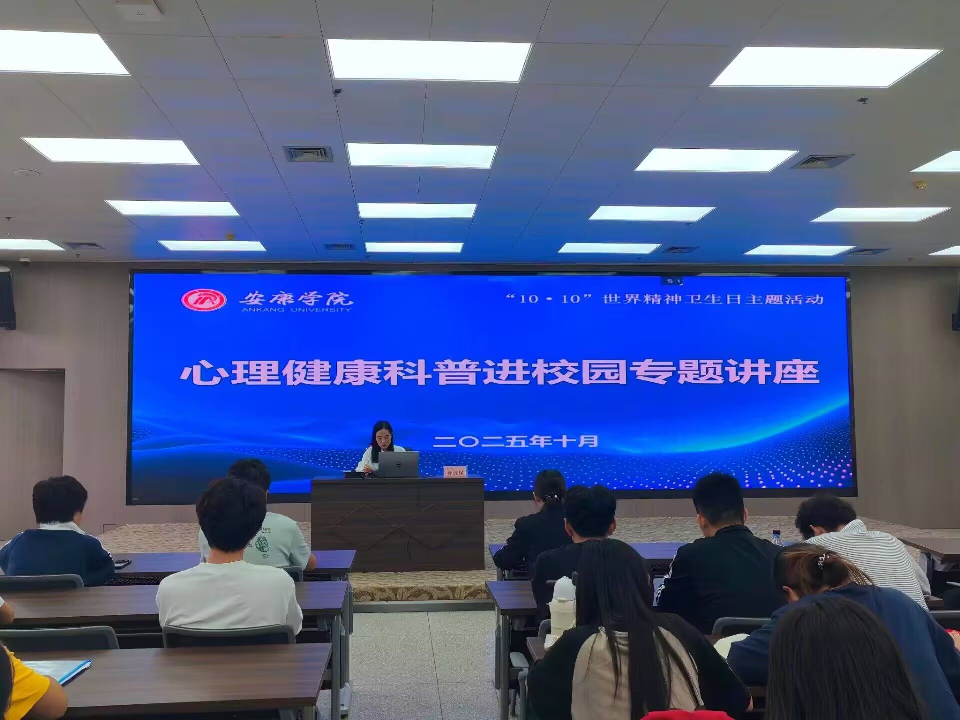 为持续推进新生入学教育系列活动,10月11日,BV伟德官方网站组织2025级新生参加公司心理教育进校园专题讲座,该讲座特邀安康市中心医院精神科副主任医师孙敦保与消化内科副主任医师吴玉梅进行讲授。