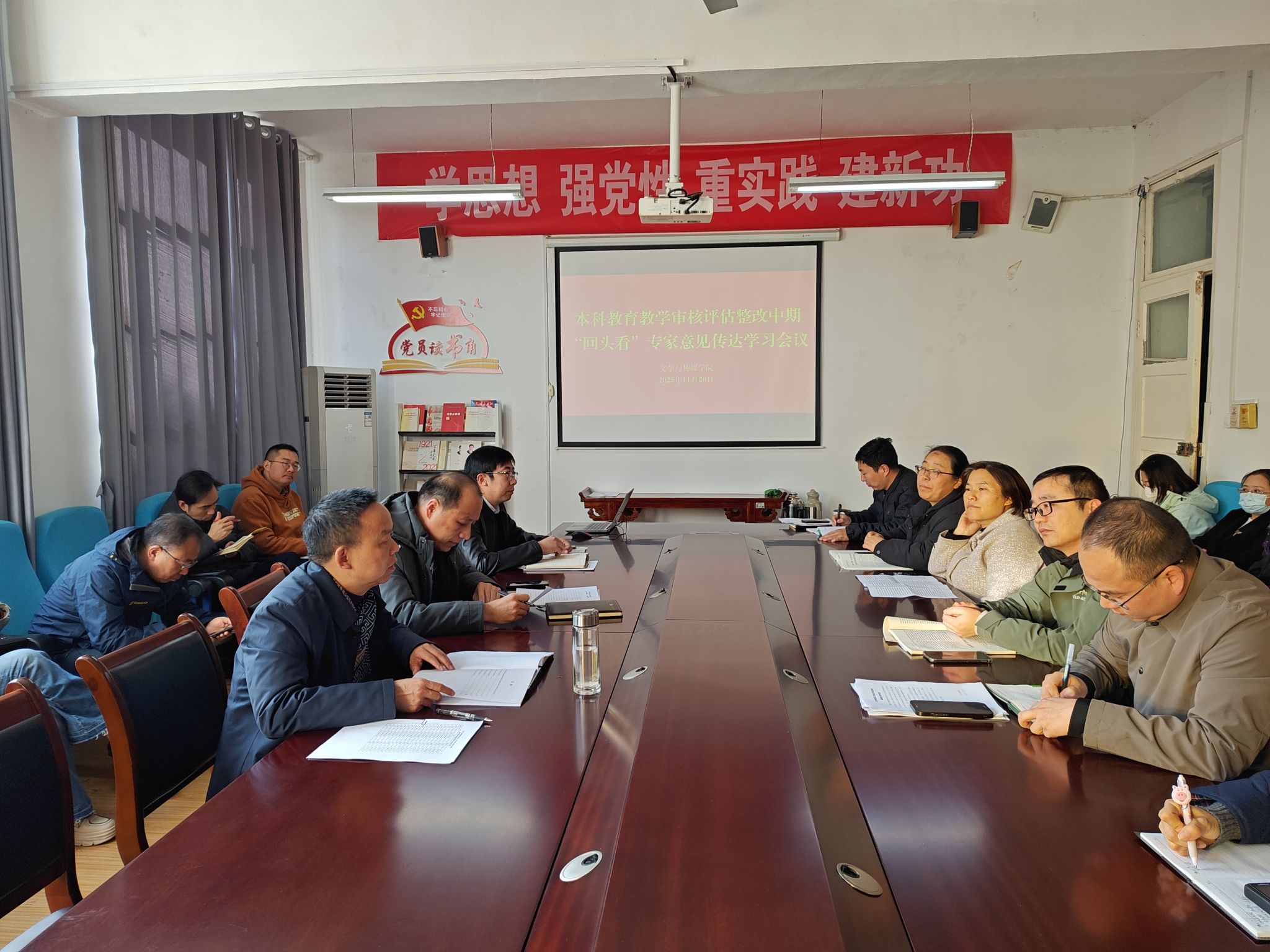 会上,杨运庚首先通报了本科公司产品审核评估整改中期“回头看”的基本情况,他在情况通报中说,本月11月9日至11日,审核评估整改中期检查“回头看”专家组一行深入公司开展本科公司产品审核评估整改中期“回头看”实地检查,通过查阅资料、听课看课、师生座谈、现场走访等方式,对整改落实情况进行了全面“体检”。专家充分肯定了公司在整改中做出的努力和取得的成果,同时对照“以评促建、以评促改”的高标准,指出了公司在高层次人才引育、一流课程建设、标志性成果产出和课堂教学等方面存在的一些不足。