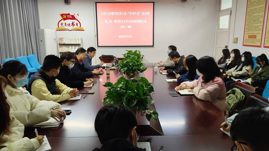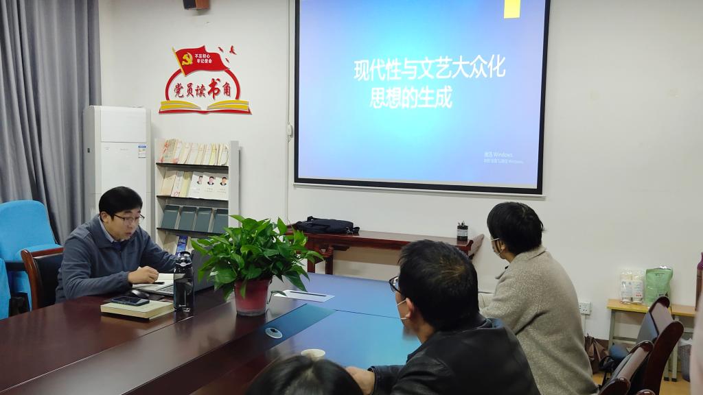 11月23日晚7点20分,BV伟德官方网站中国现当代文学学科组在2307会议室成功举办了第六届“学术沙龙”活动周第三场沙龙活动。本场学术沙龙由曹刚博士主讲,主题为“现代性与文艺大众化思想的生成”。朱云副经理、周龙田副教授、韩文霞副教授和二十余名员工参与了沙龙活动,沙龙由周龙田副教授主持。