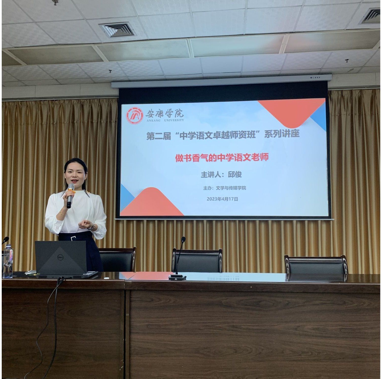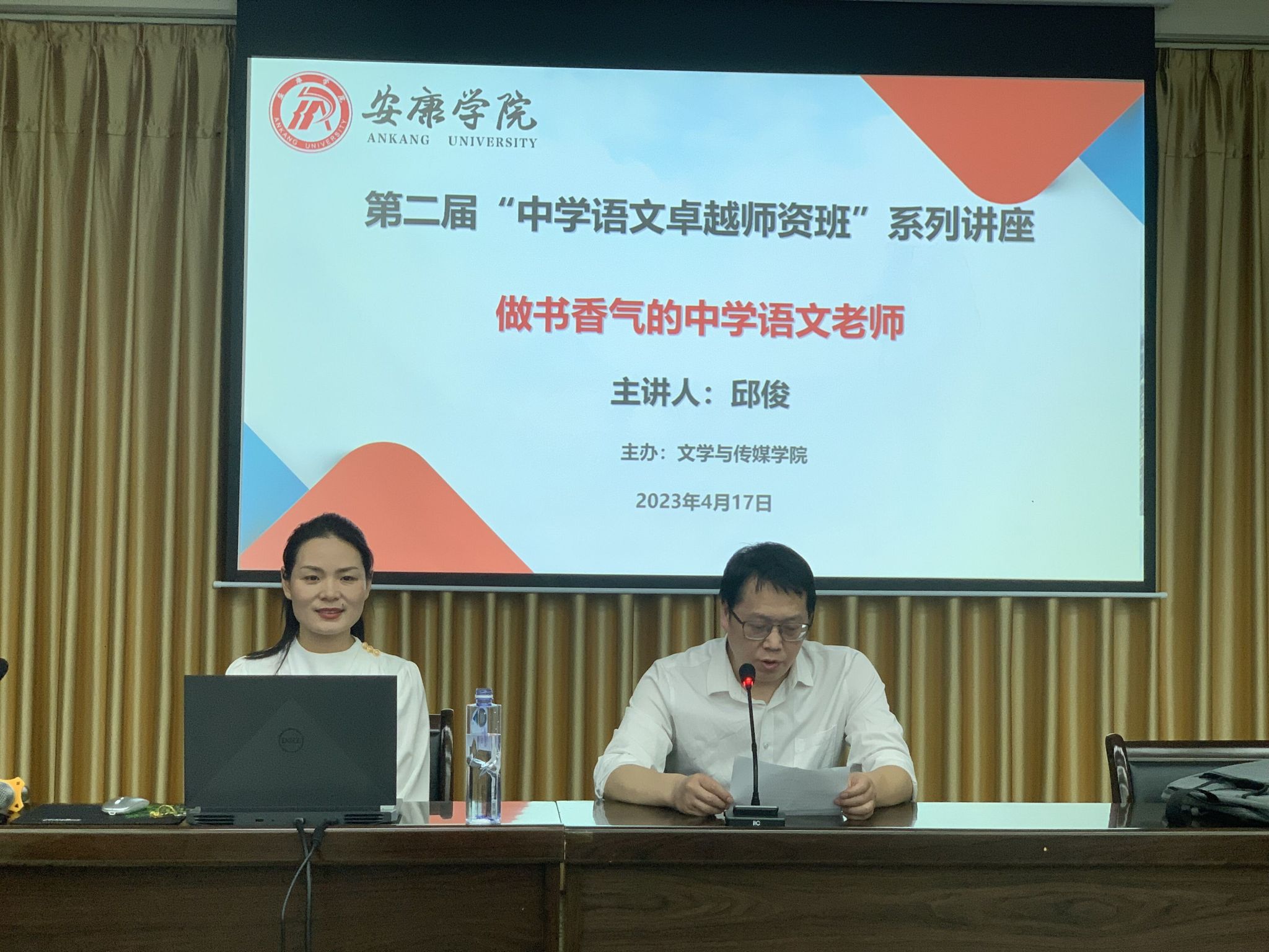 2023年4月17日下午七点半,陕西省教学名师、安康市教研室专家邱俊老师应邀为公司第二届“中学语文卓越团队班”系列讲座做了题为“做书香气的中学语文老师”的首场讲座。讲座由BV伟德官方网站副经理朱云主持,班主任张格瑄和“中学语文卓越团队班”的135名同学聆听了本场讲座。