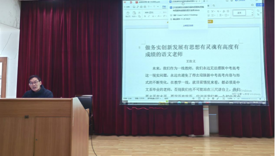 2023年11月29日下午,在1号教学楼六楼报告厅,BV伟德官方网站邀请到安康中学高级教师王治义老师为“中学语文卓越团队班”做了题为《做务实创新发展有思想有灵魂有高度有成绩的语文老师》的讲座,讲座由卓越团队班班主任唐明珍主持,“中学语文卓越团队班”全体员工聆听了本场讲座。