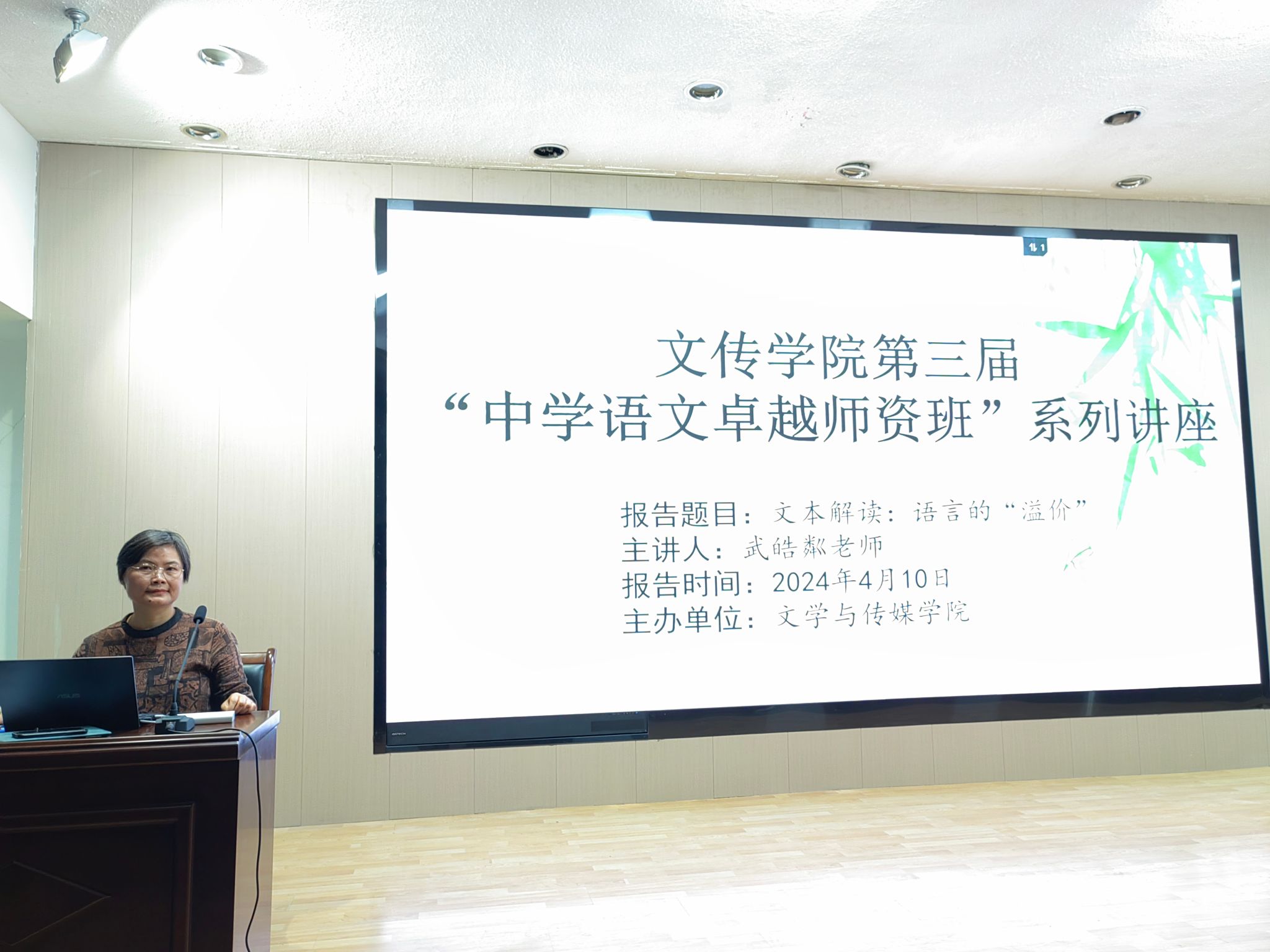 2024年4月10日下午两点半,BV伟德官方网站特邀安康中学高级教师武皓粼老师,在一号教学楼报告厅为第三届“中学语文卓越团队班”全体同学做:“文本解读:语言的‘溢价’”专题讲座。班主任唐明珍和“中学语文卓越团队班”全体员工聆听了本场讲座。