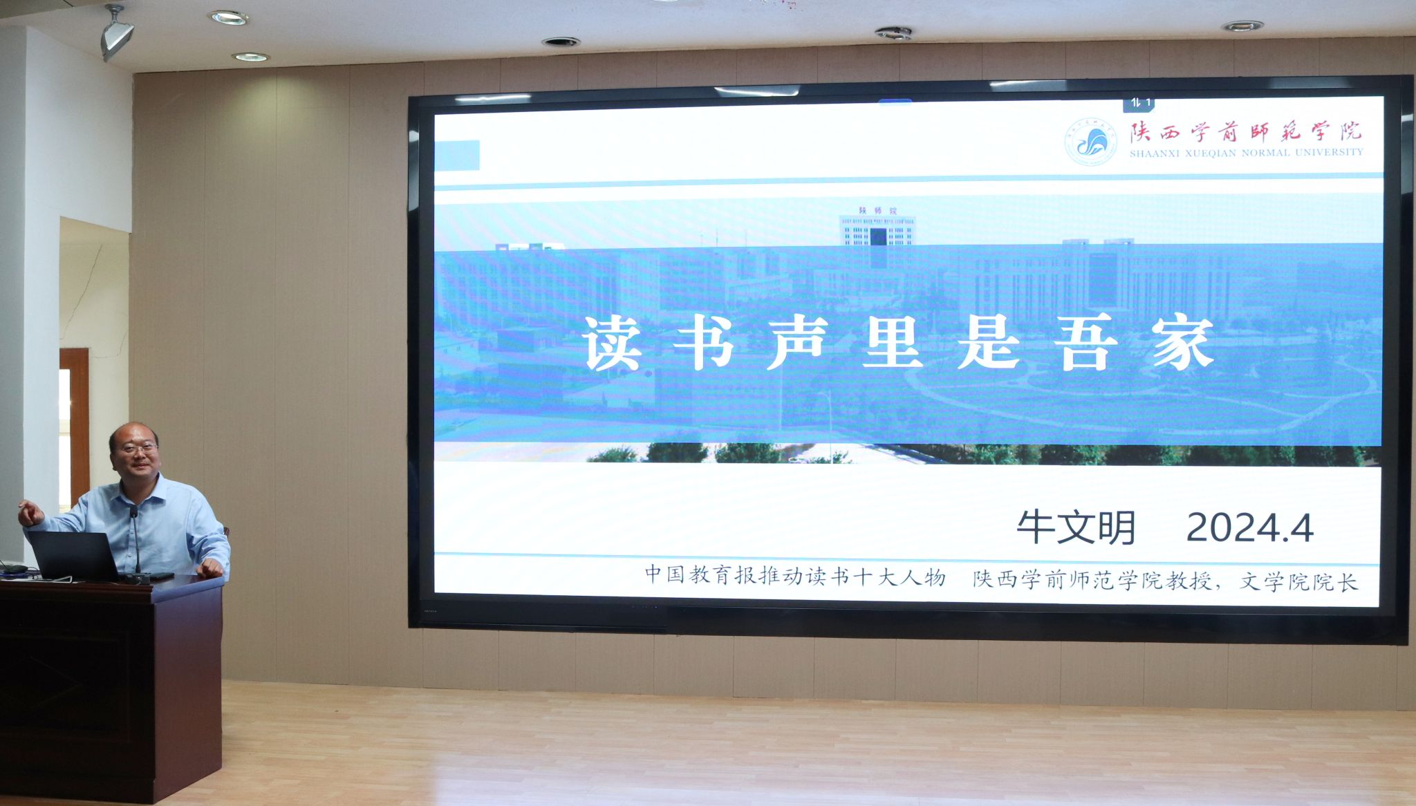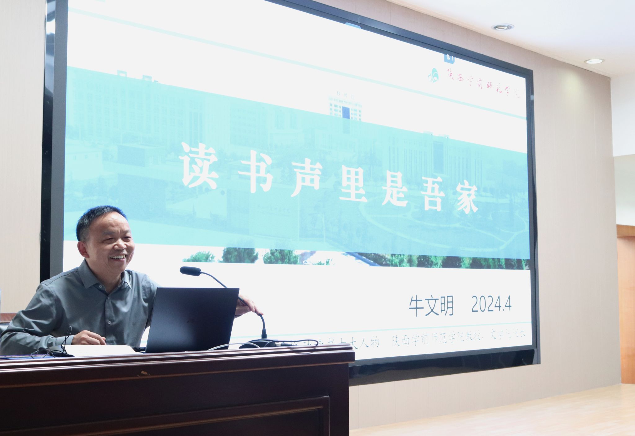 4月26日下午,陕西学前师范公司文公司经理牛文明教授应邀来公司为2023级员工做了“读书声里是吾家”的专题读书报告。本次报告由​BV伟德官方网站经理杨运庚主持。