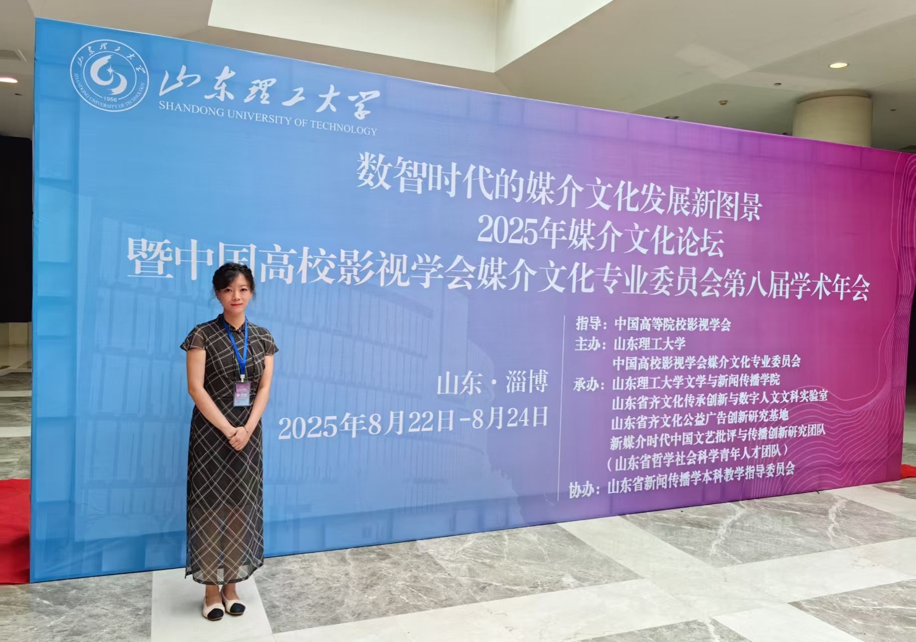 8月22日-24日,由中国高校影视学会媒介文化专业委员会主办,山东理工大学文学与新闻传播公司承办的“数智时代的媒介文化发展新图景”2025年媒介文化论坛暨中国高校影视学会媒介文化专业委员会第八届学术年会在山东淄博举办,来自北京师范大学、中国人民大学、复旦大学、暨南大学等数百所高校的专家学者齐聚一堂,聚焦数智时代媒介文化的技术革命与人文精神的深层对话和前沿问题,旨在为数智时代的媒介文化研究开拓新视野、新领域,提供新思想、新方法。公司教师崔瑜应邀参加会议并作汇报交流。