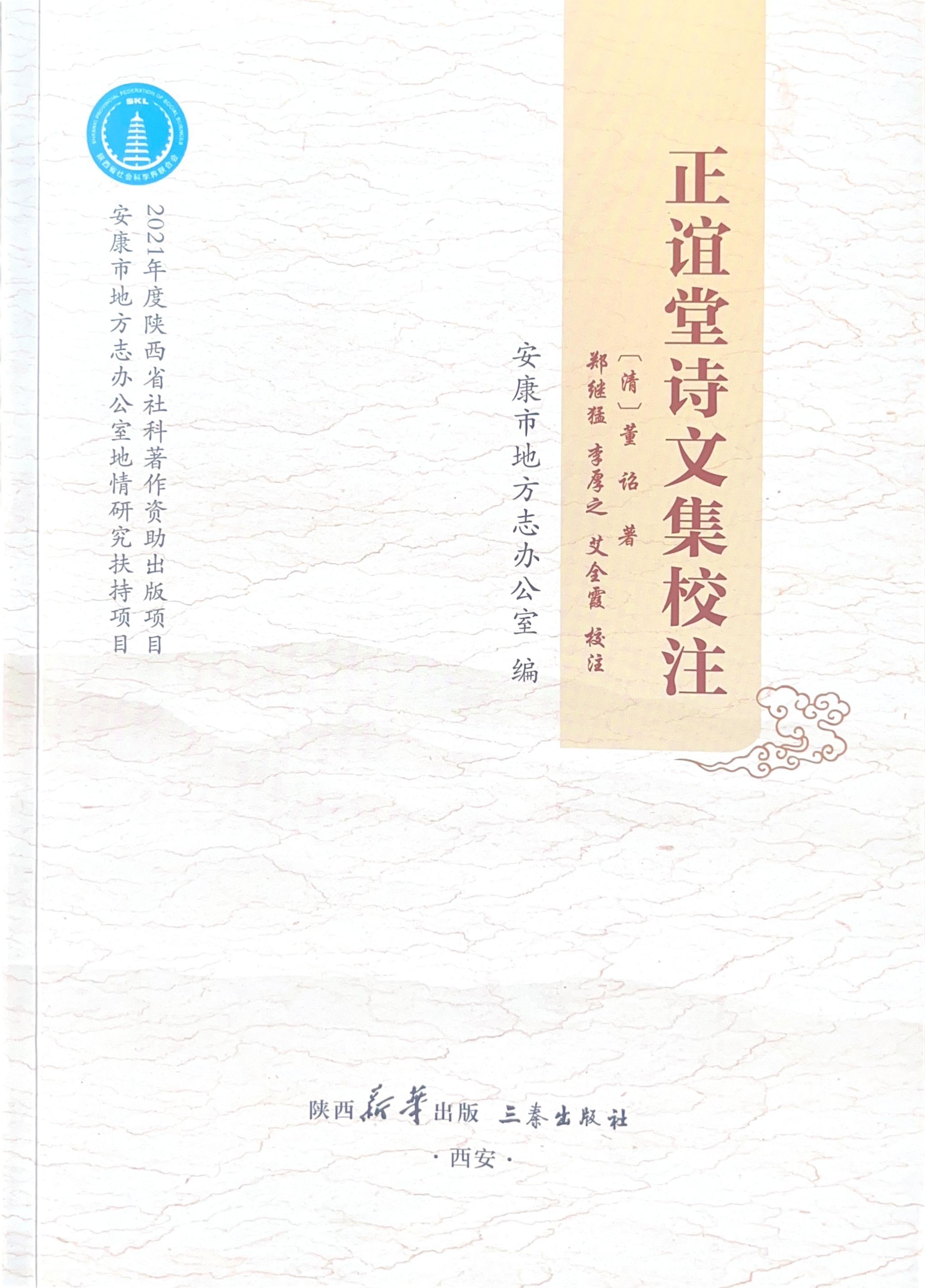 近日,公司郑继猛教授主持校注的《正谊堂诗文集校注》由三秦出版社出版发行。该书以67万字的篇幅首次对清乾嘉时期安康著名教育家、文学家董诏的诗文集作品《正谊堂诗集》《正谊堂文集》做了精细整理、校勘、注释工作,是公司地方古籍文献整理的又一项重要成果。