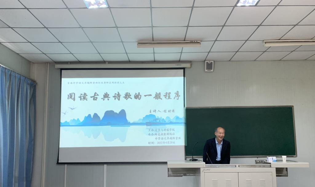劳动节前夕,按照“中学语文卓越团队班”人才培养计划方案,4月29日下午4点,公司特邀安康市汉滨高级中学副董事长、特级教师、陕西省名师培养对象实践导师程时进老师在1018教室开展了题为“阅读古典诗歌的一般程序”的专题讲座活动,活动由中学语文卓越团队班班主任张格瑄老师主持。